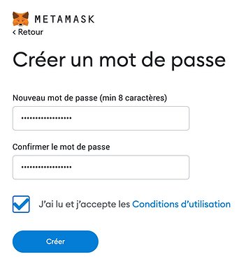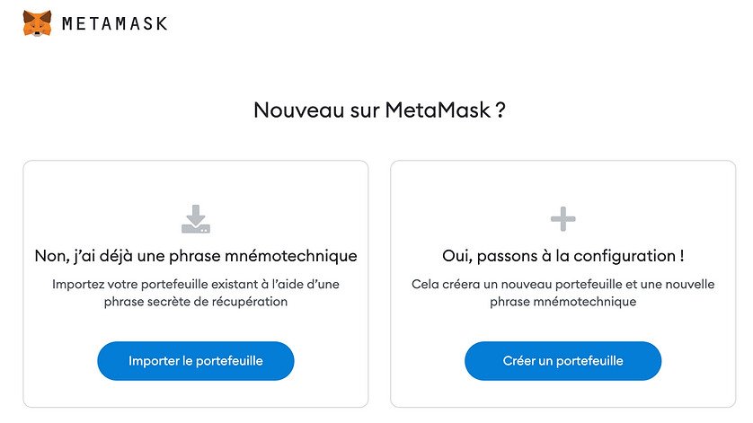 ì ce stade, Metamask vous propose d'importer ou de créer un nouveau portefeuille. Ici, il faut créer un nouveau portefeuille. Cliquez sur "Créer un portefeuille".